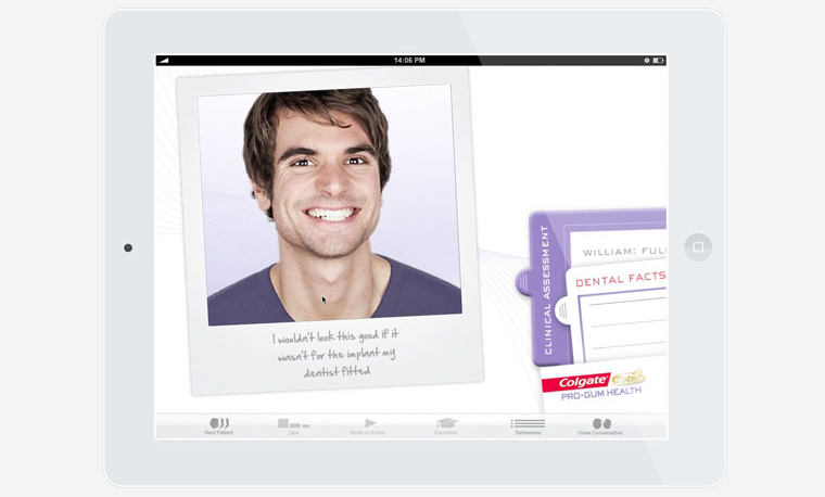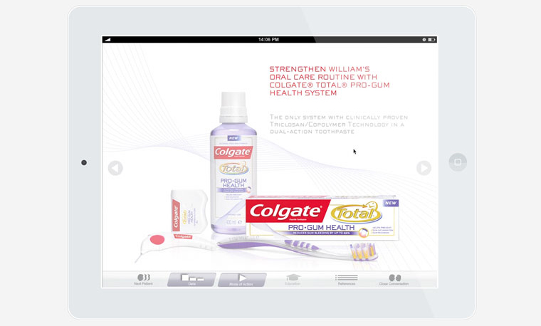 To accompany the new Colgate Total consumer campaign, we (that's Karam Sodhi and me) produced professional materials including ads, print material and this iPad selling aid.